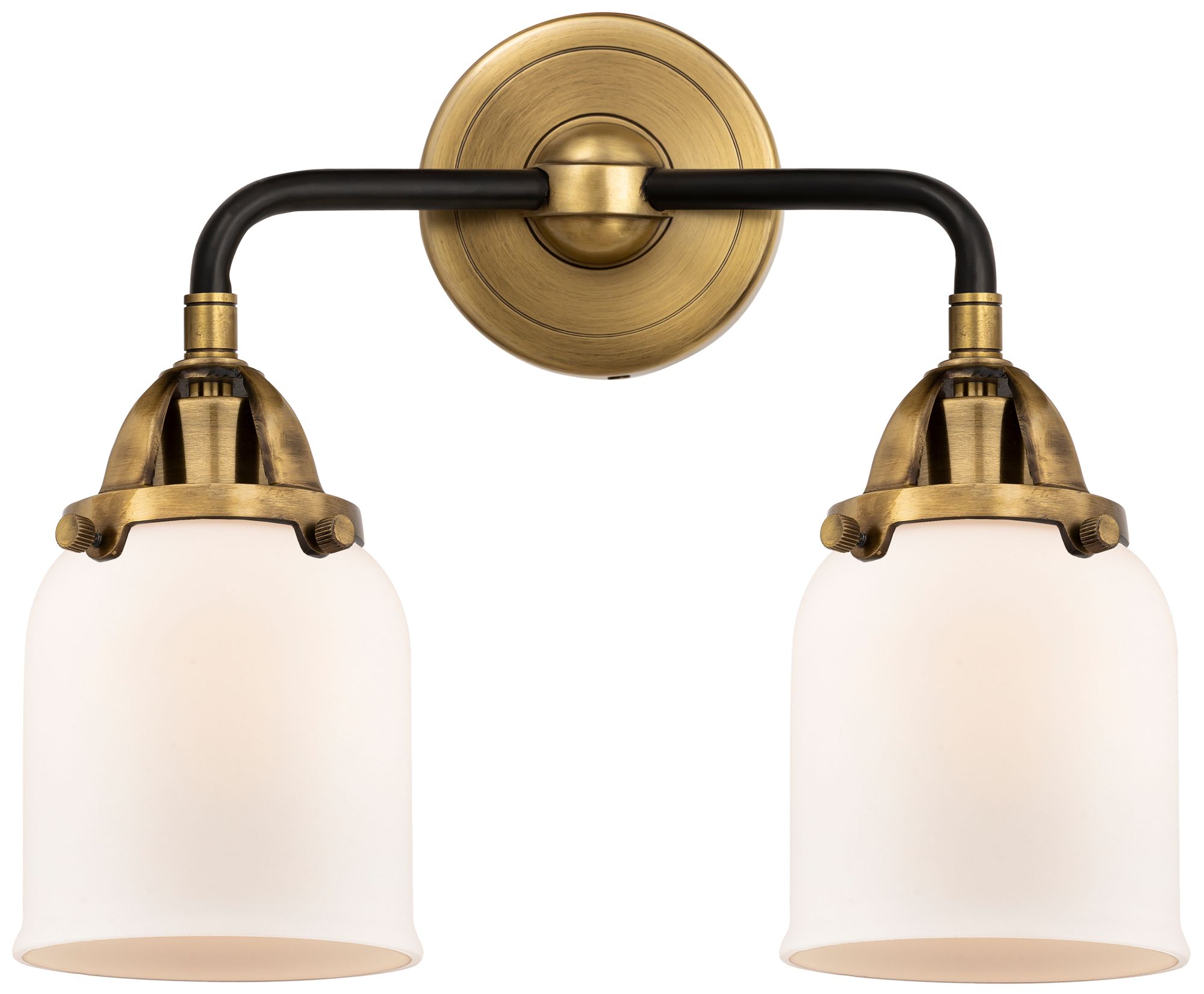 Nouveau 2 Bell 5" 2 Light 13" Bath Light - Black Brass - White Sh