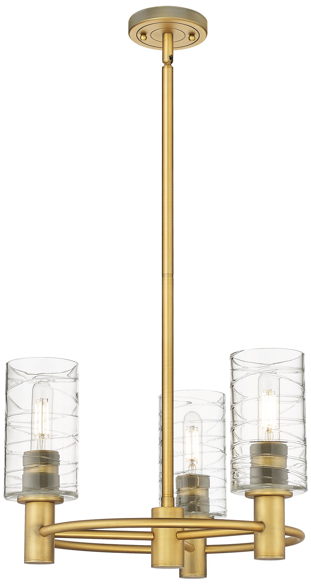 Crown Point 18"W 3 Light Stem Hung Brushed Brass Pendant With Swirl Sh