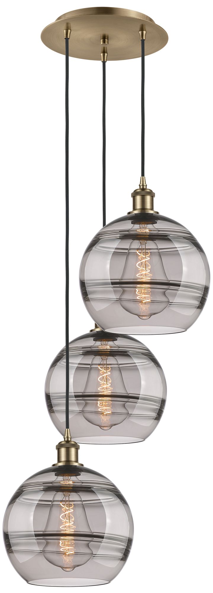 Ballston Rochester 16.5"W 3-Light Antique Brass Cord Pendant w/ Smoke