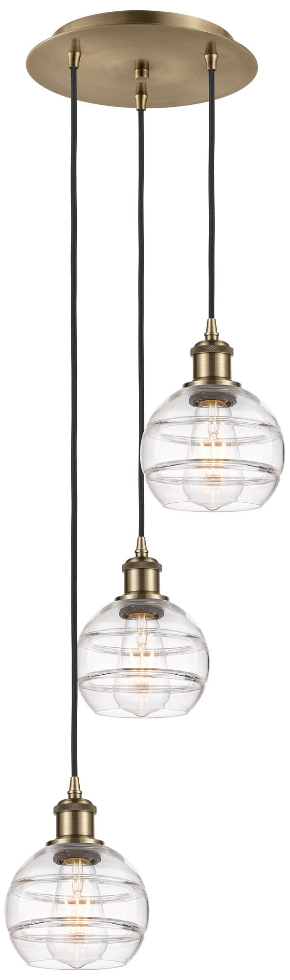 Ballston Rochester 13"W 3-Light Antique Brass Cord Pendant w/ Clear Sh