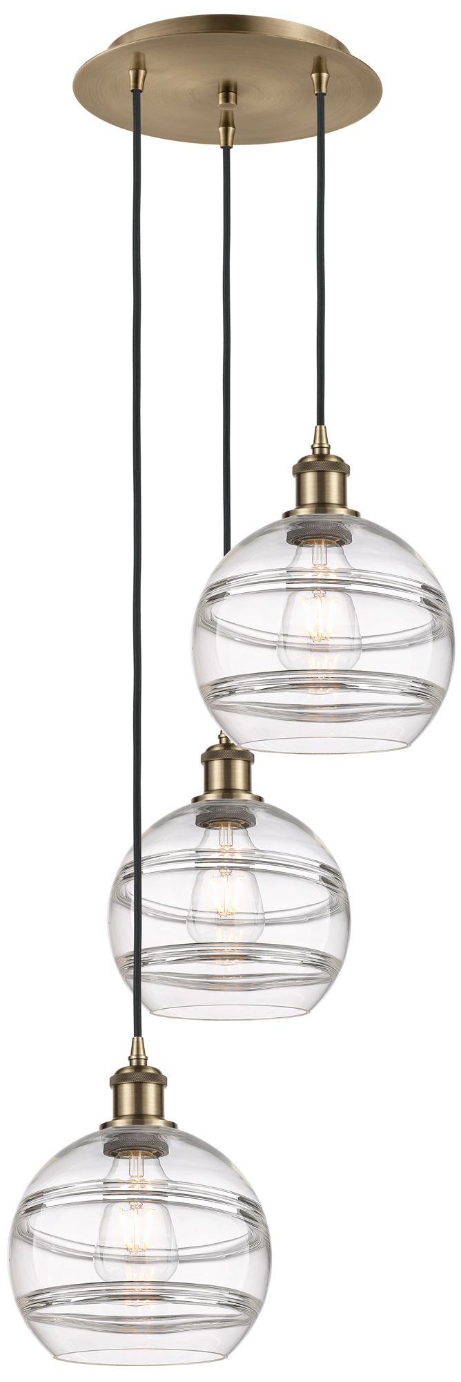 Ballston Rochester 14.5"W 3-Light Antique Brass Cord Pendant w/ Clear