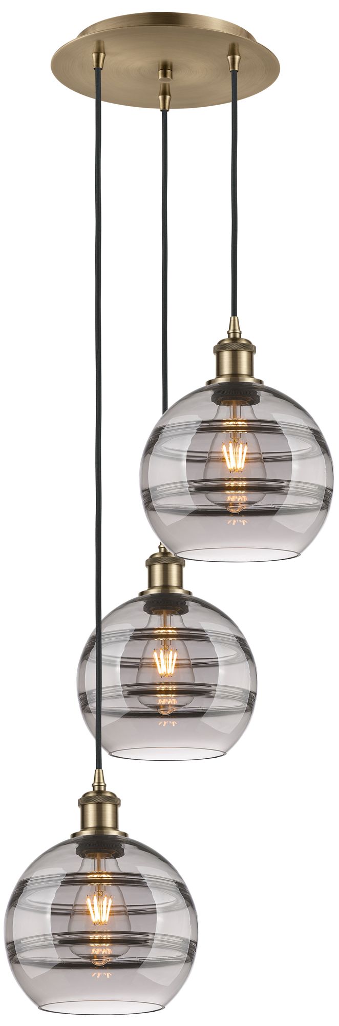 Ballston Rochester 14.5"W 3-Light Antique Brass Cord Pendant w/ Smoke