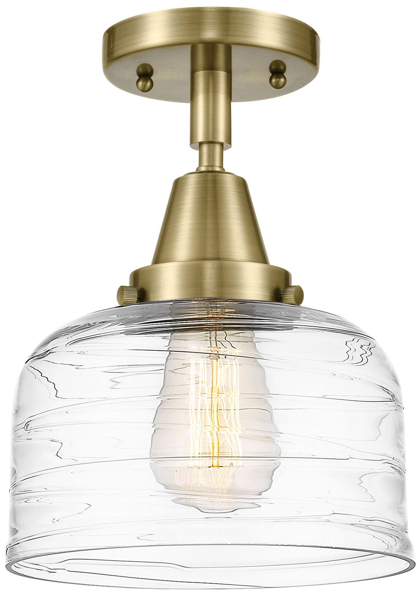 Caden Bell 8" Flush Mount - Antique Brass - Clear Deco Swirl Shade