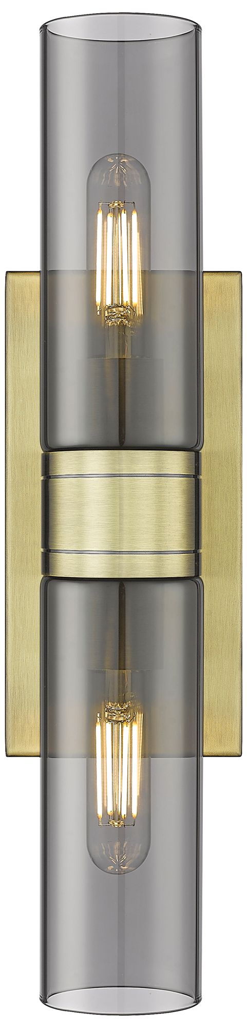 Ballston Urban 18"W 2 Light Antique Brass Bath Light w/ Plated Smoke S