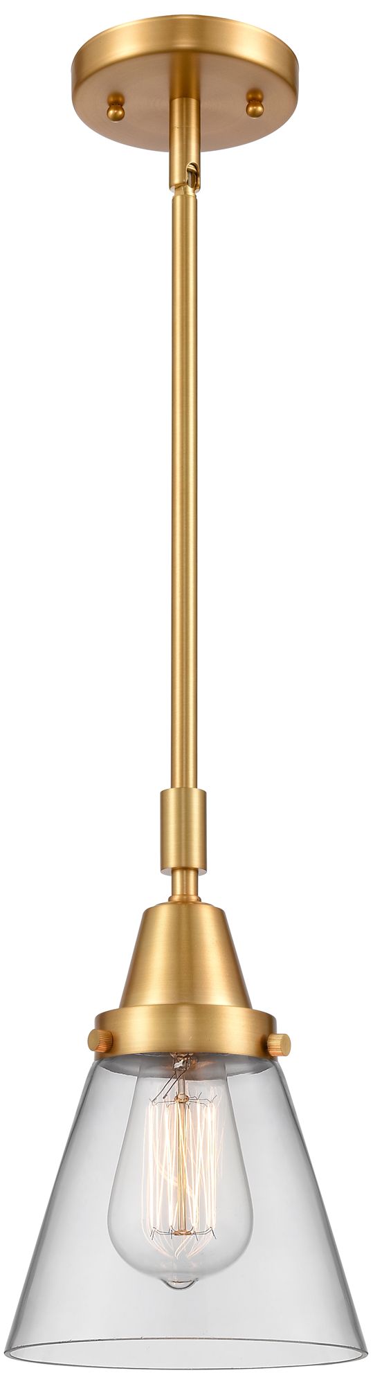 Caden Cone 6" Wide Satin Gold Stem Hung Mini Pendant w/ Clear Shade