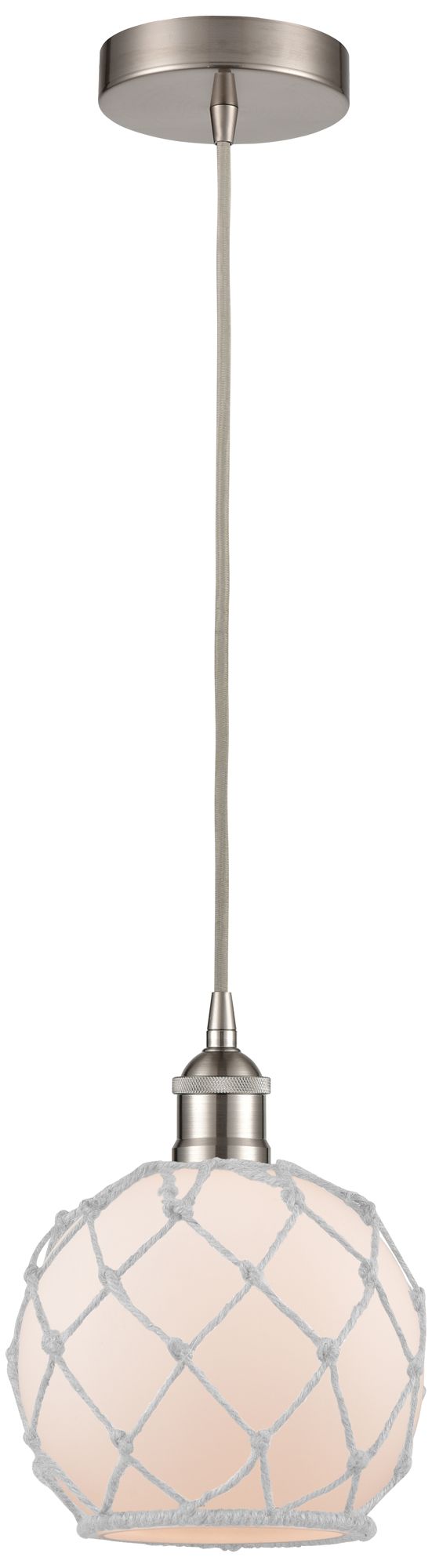 Edison Farmhouse 8" Brushed Nickel Corded Mini Pendant w/ White Rope S