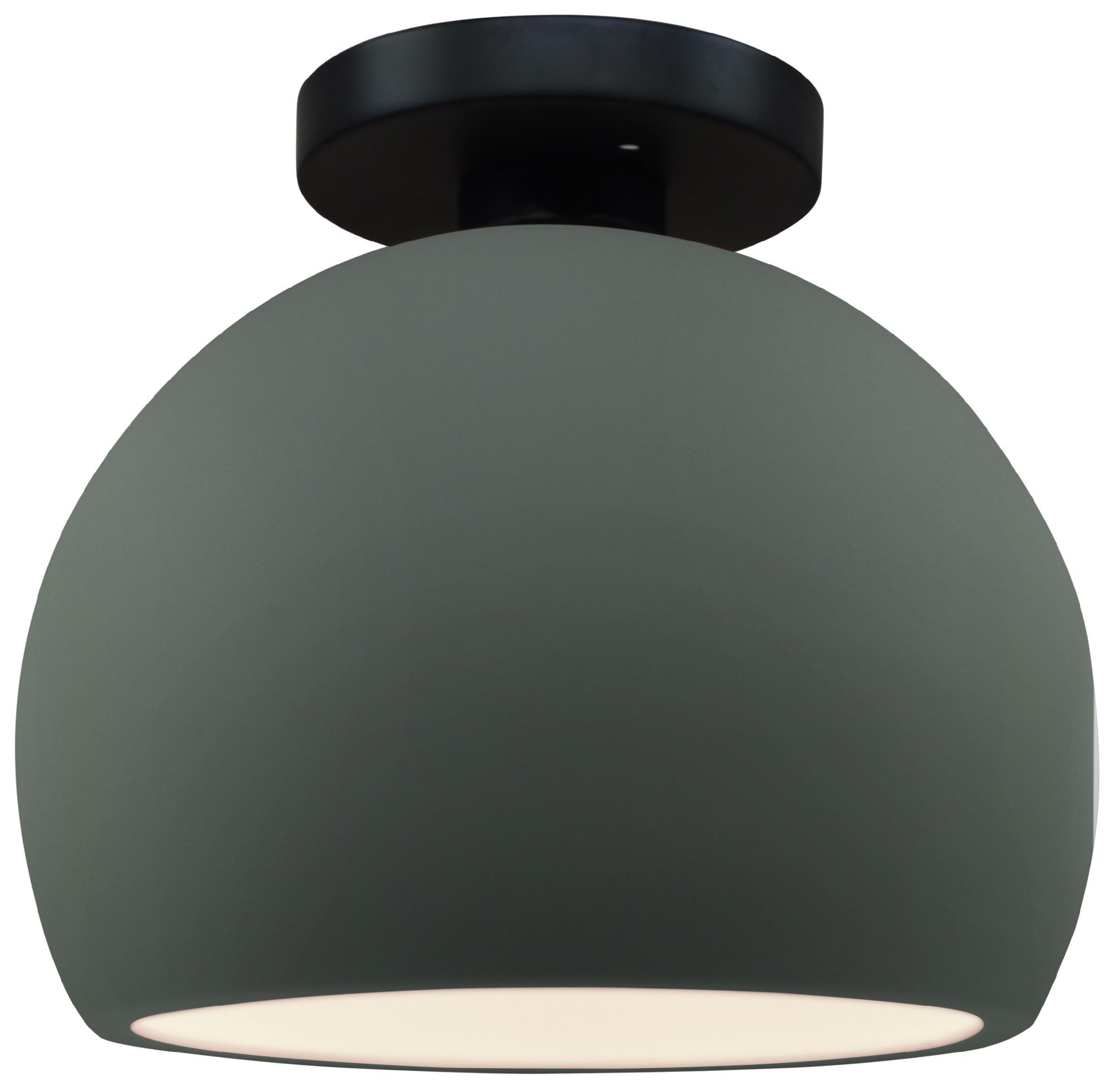 Radiance 7"W Pewter Green Frame Matte Black Small Globe LED Semi.Flush