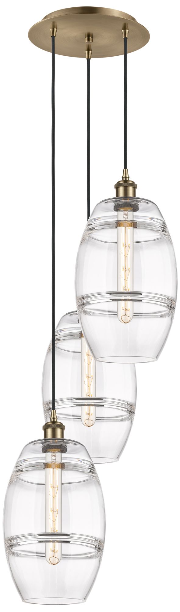 Ballston Vaz 14.5"W 3-Light Antique Brass Corded Pendant w/ Clear Shad