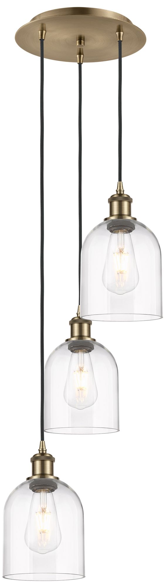 Ballston Bella 12"W 3-Light Antique Brass Corded Pendant w/ Clear Shad