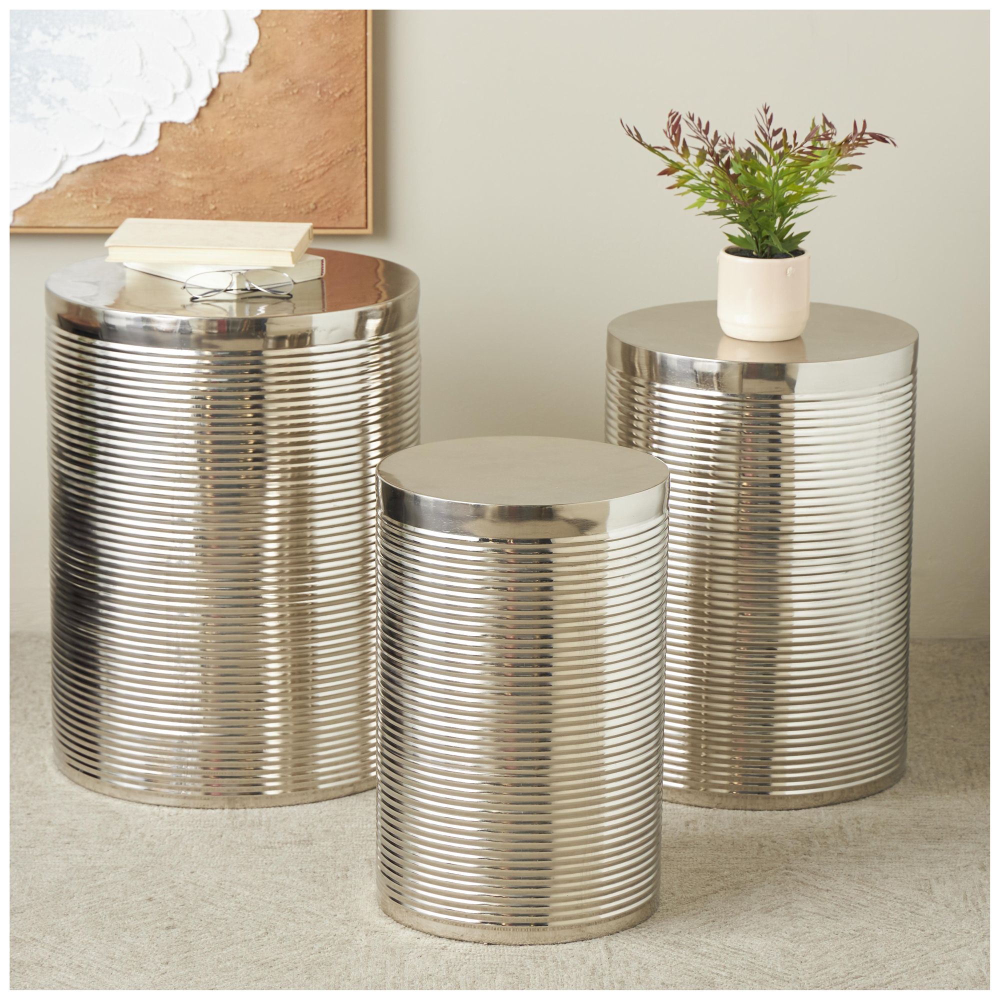 Silver Metal Contemporary Accent Table, S/3 24", 22", 20"H