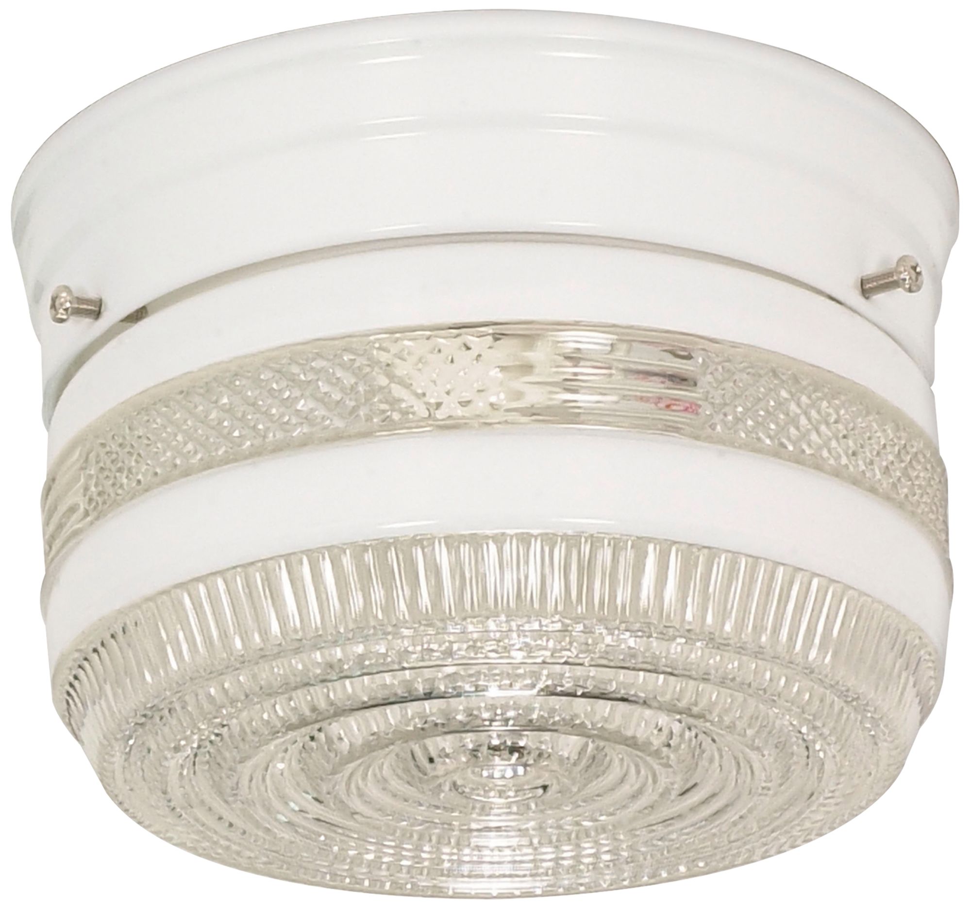 1 Light - 6" - Flush Mount - Small Crystal / White Drum - White Finish