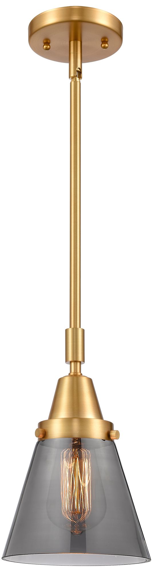 Caden Cone 6" Wide Satin Gold Stem Hung Mini Pendant w/ Plated Smoke S