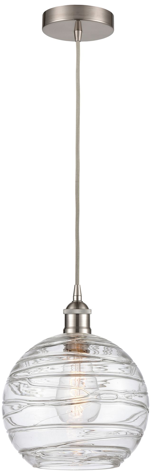 Athens 10" Brushed Satin Nickel Mini Pendant w/ Clear Deco Swirl Shade