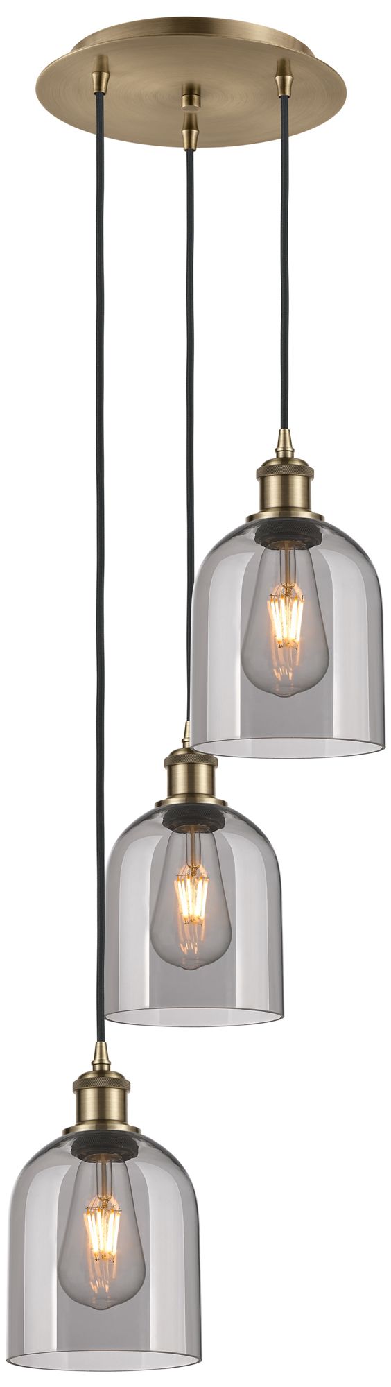 Ballston Bella 12"W 3-Light Antique Brass Corded Pendant w/ Smoke Shad