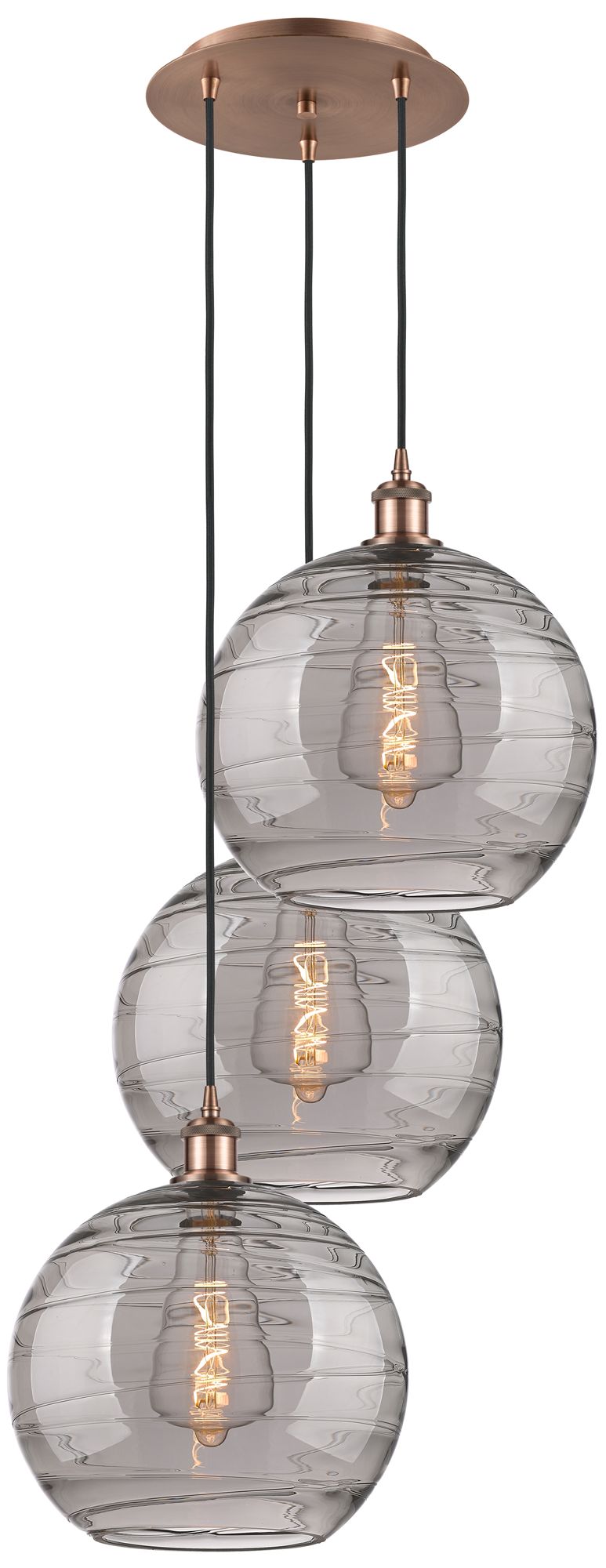 Ballston Athens 18.5"W 3-Light Copper Corded Pendant w/ Smoke Swirl Sh