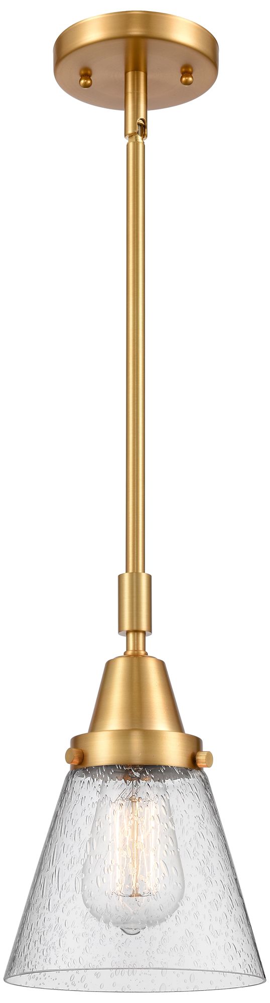 Caden Cone 6" Wide Satin Gold Stem Hung Mini Pendant w/ Seedy Shade