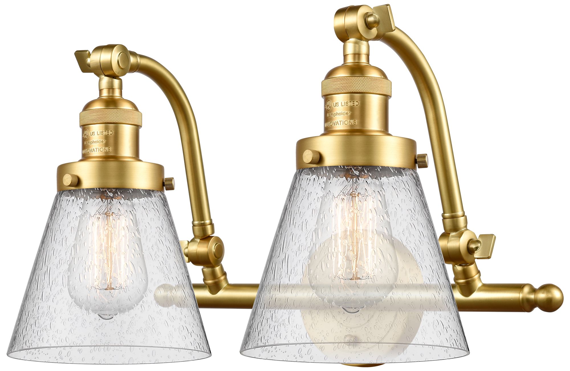 Cone 18" Wide 2 Light Satin Gold Bath Vanity Light w/ Seedy Shade