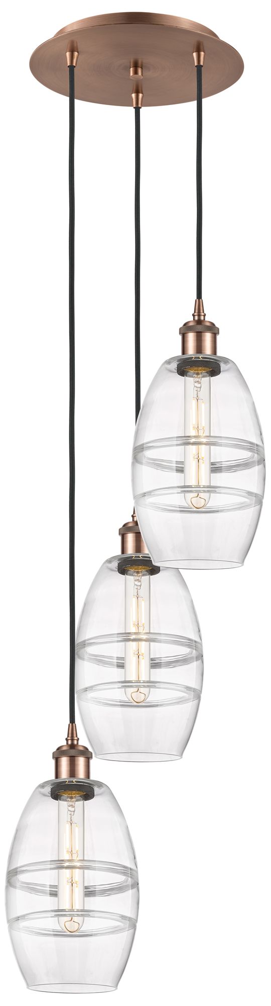 Ballston Vaz 12.38"W 3-Light Antique Copper Corded Pendant w/ Clear Sh