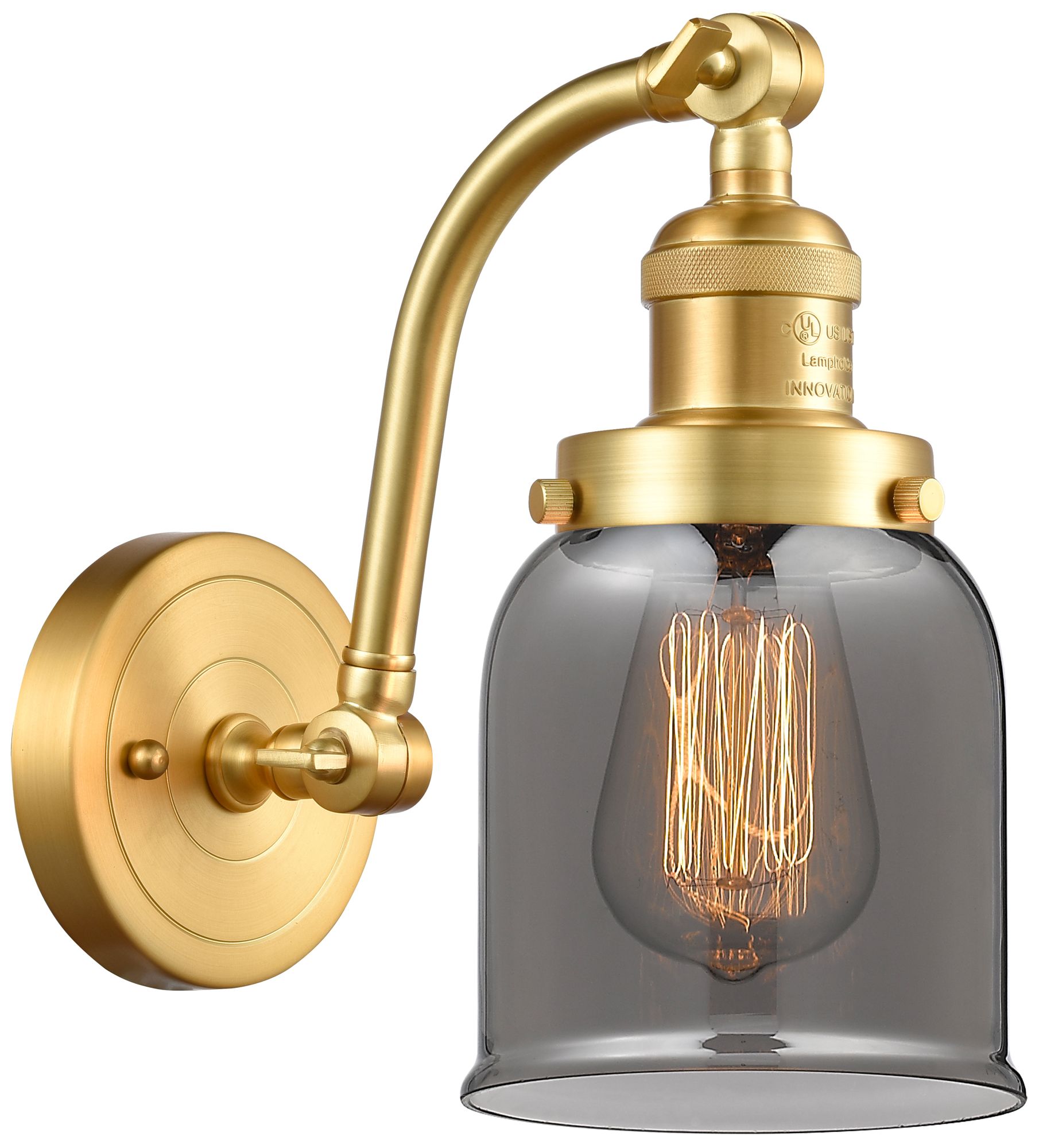 Bell 5" Satin Gold Sconce w/ Plated Smoke Shade