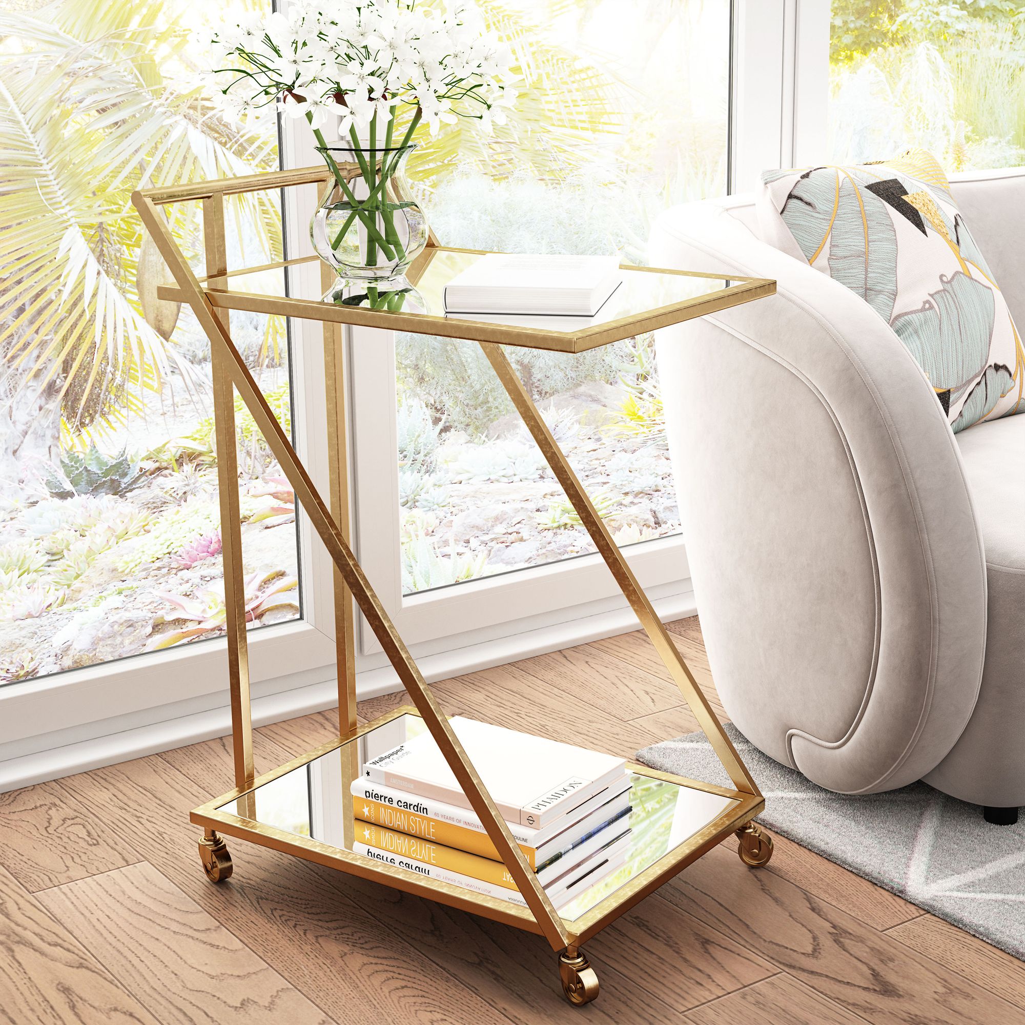 Zuo Alto 22" Wide Gold Metal Mirrored Glass Tea or Bar Cart