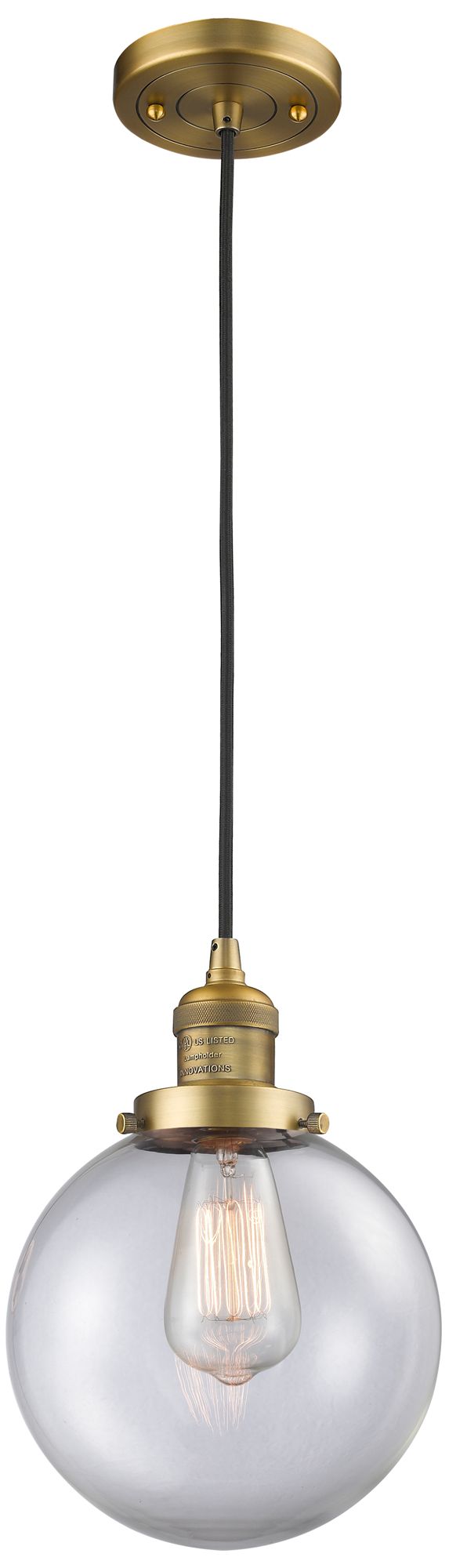 Franklin Beacon 8" Wide Brushed Brass Corded Mini Pendant w/ Clear Sha