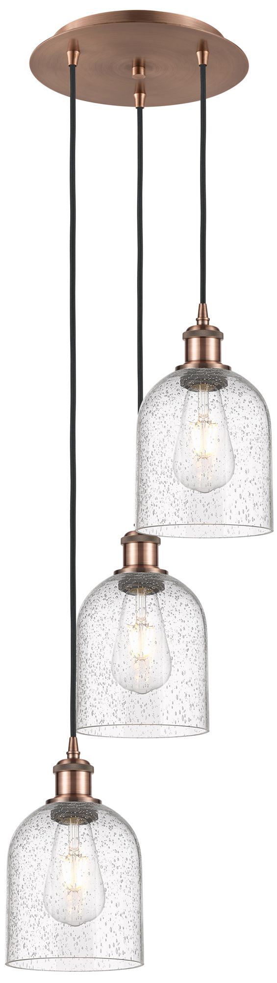 Ballston Bella 12"W 3-Light Antique Copper Corded Pendant w/ Seedy Sha