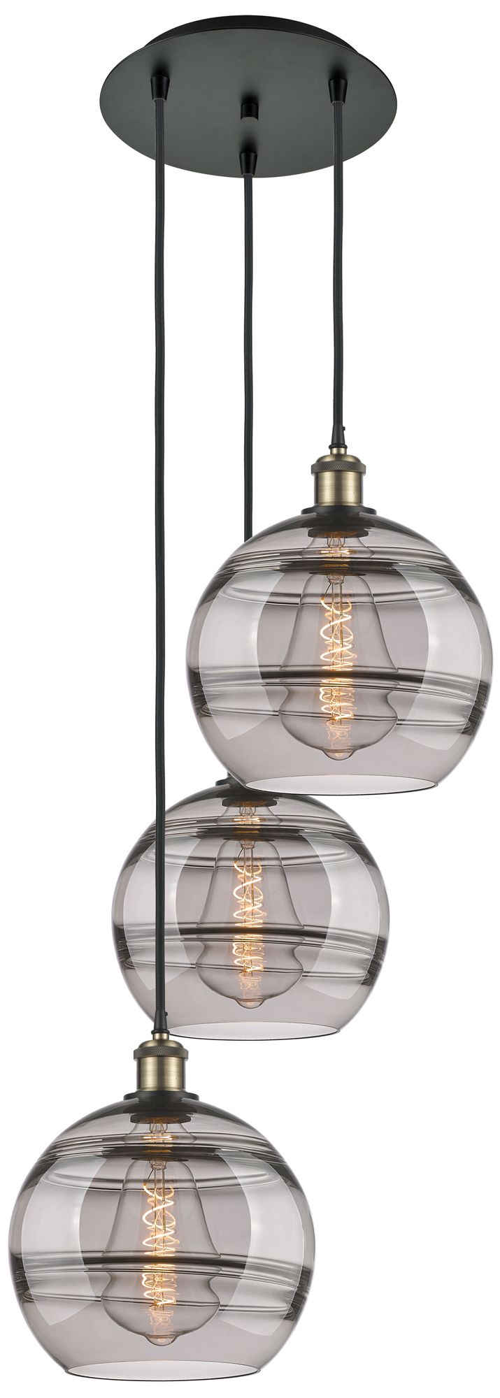 Ballston Rochester 16.5"W 3-Light Black Brass Corded Pendant w/ Smoke