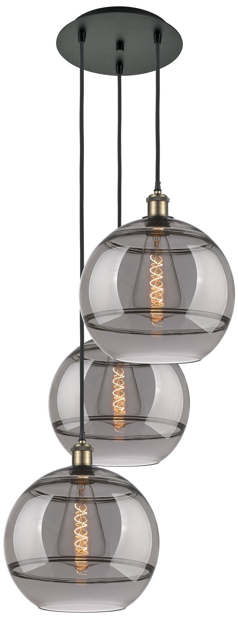 Ballston Rochester 18.5"W 3-Light Black Brass Corded Pendant w/ Smoke
