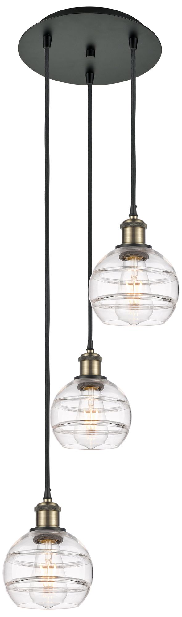 Ballston Rochester 12.38"W 3-Light Black Brass Cord Pendant w/ Clear S