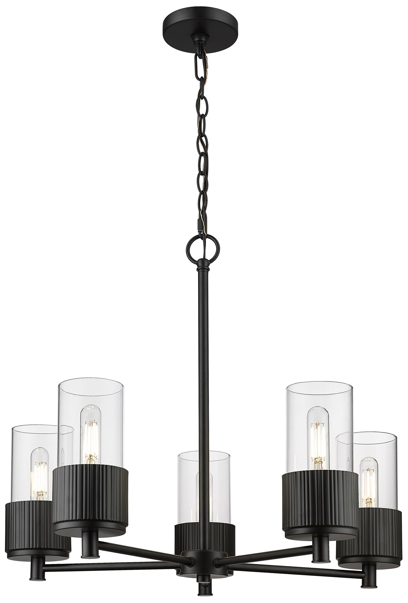 Bolivar 25" Wide 5 Light Matte Black Chain Hung Chandelier With Clear