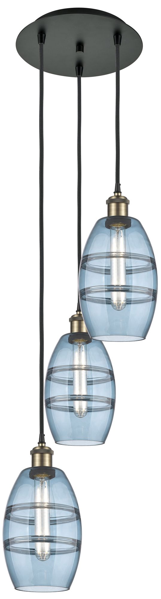 Ballston Vaz 12.38"W 3-Light Black Brass Corded Multi Pendant w/ Blue