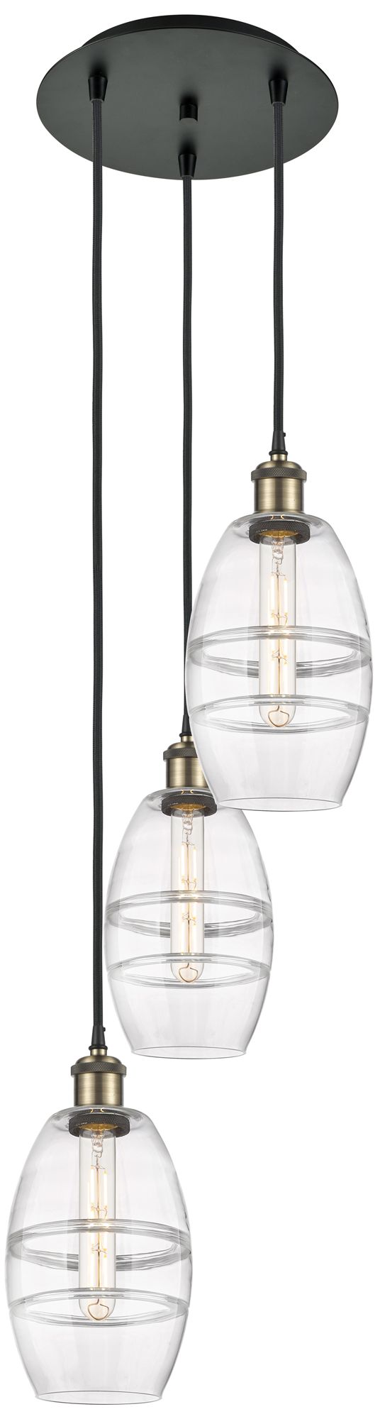 Ballston Vaz 12.38"W 3-Light Black Brass Corded Pendant w/ Clear Shade