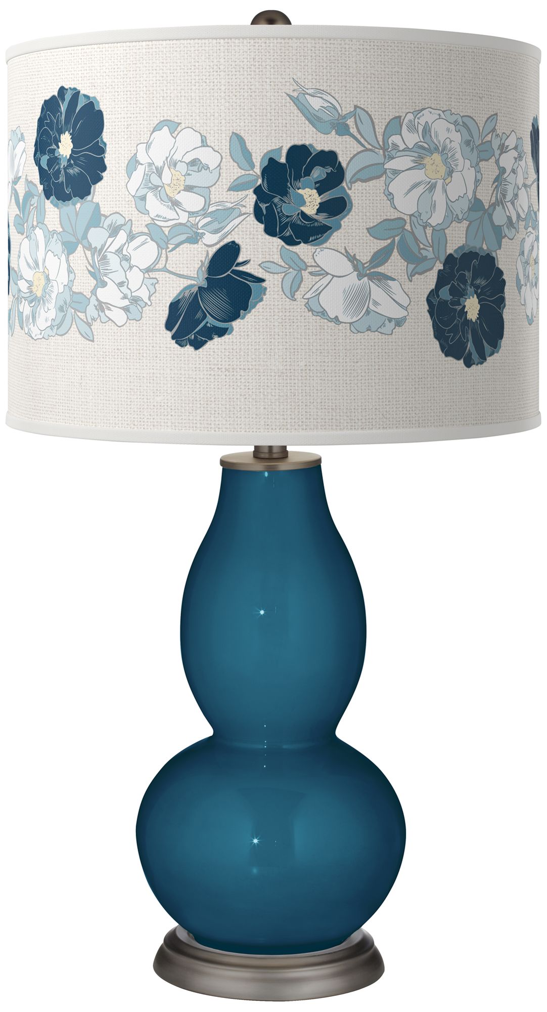 Color Plus Double Gourd 29 1/2" Rose Bouquet Oceanside Blue Table Lamp