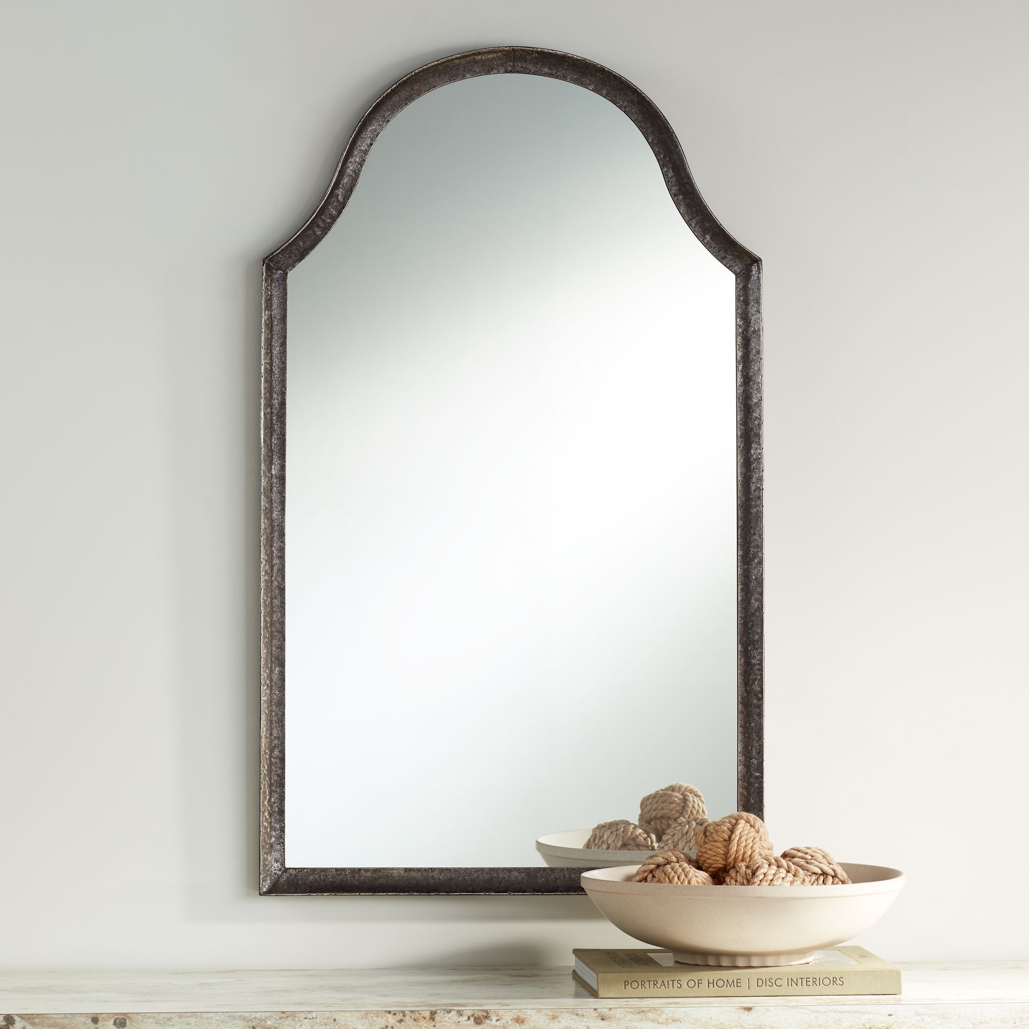 Portland Matte Dark Gunmetal 23 1/2" x 40" Arch Wall Mirror