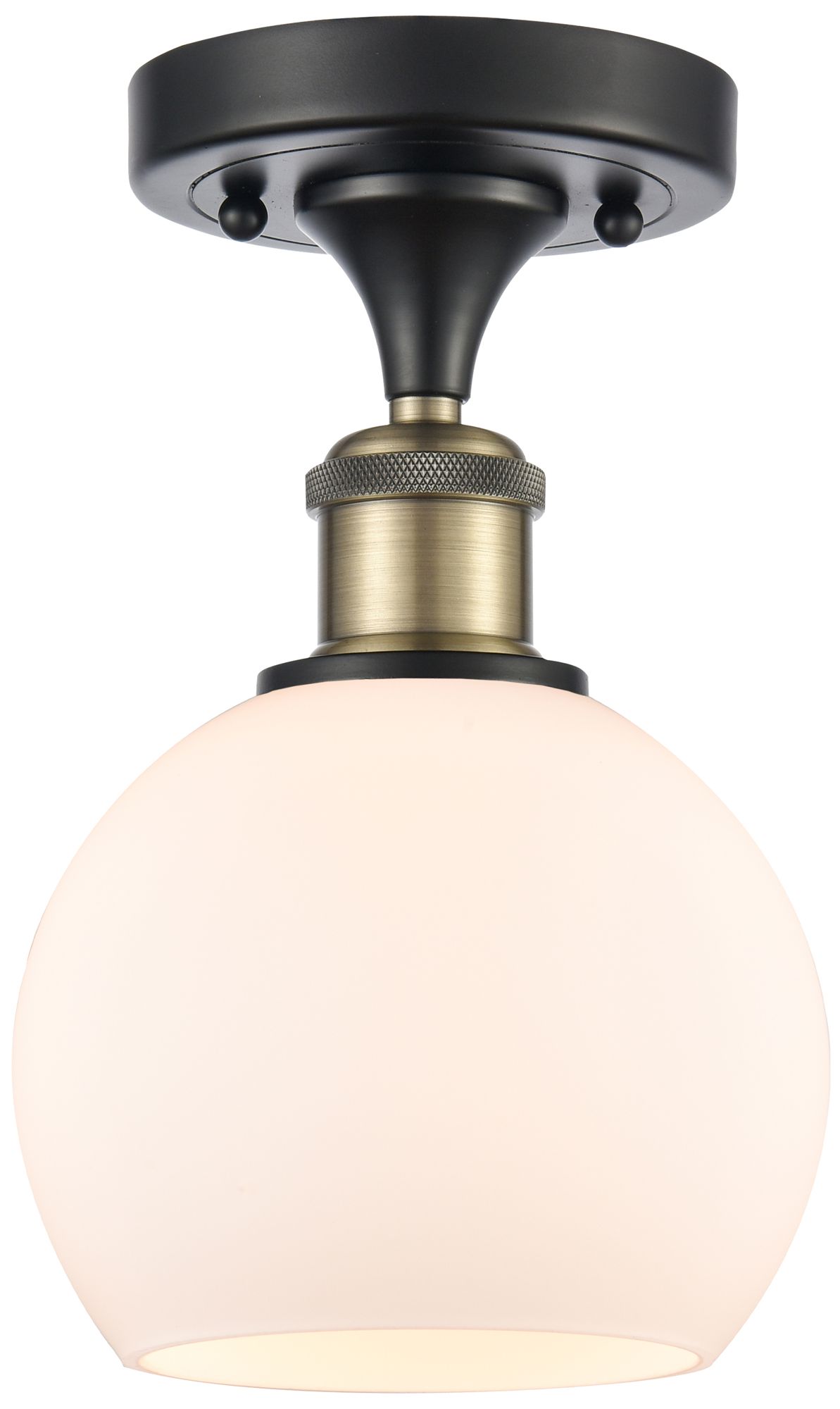 Athens 6" LED Semi-Flush Mount - Black Antique Brass - Matte White Sh