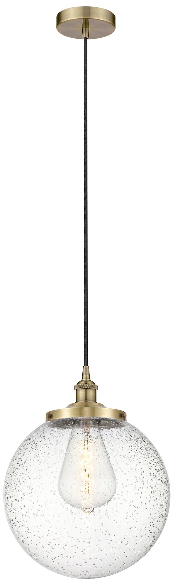 Beacon 13.75" Wide Antique Brass Corded Mini Pendant w/ Seedy Shade