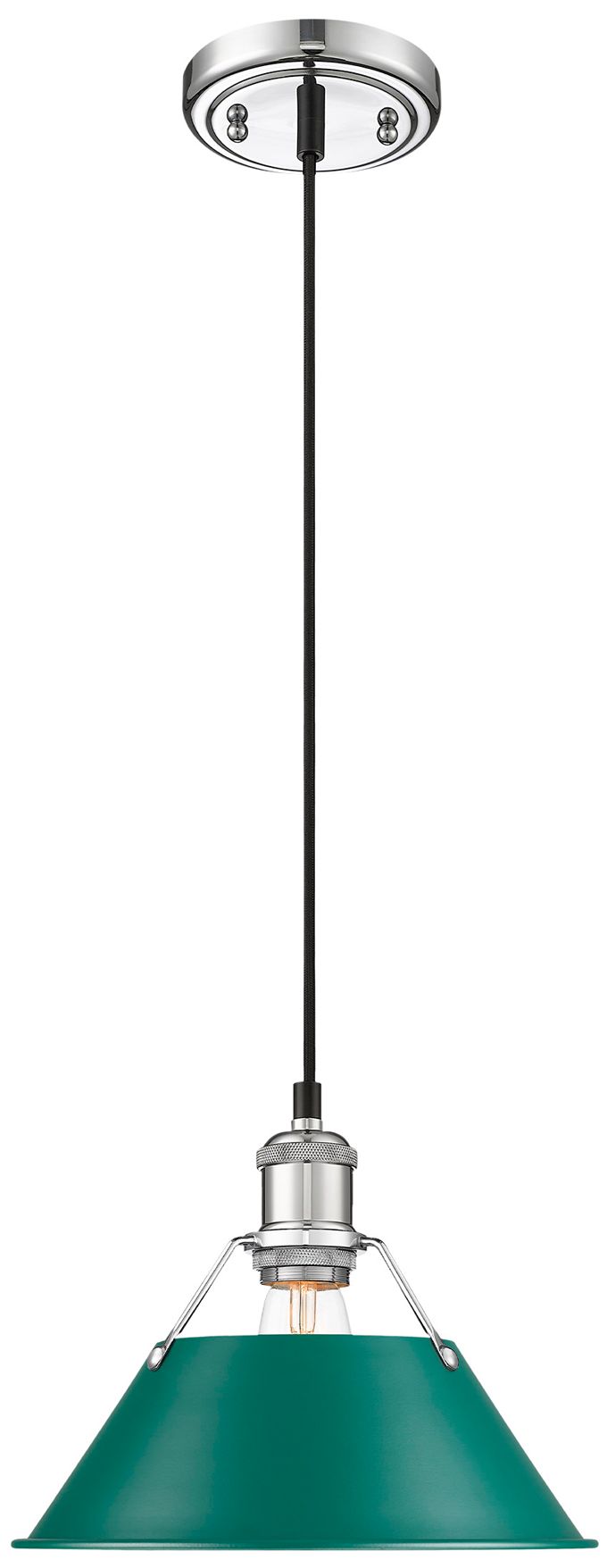 Orwell 10" Wide Medium Pendant in Chrome with Pine Green