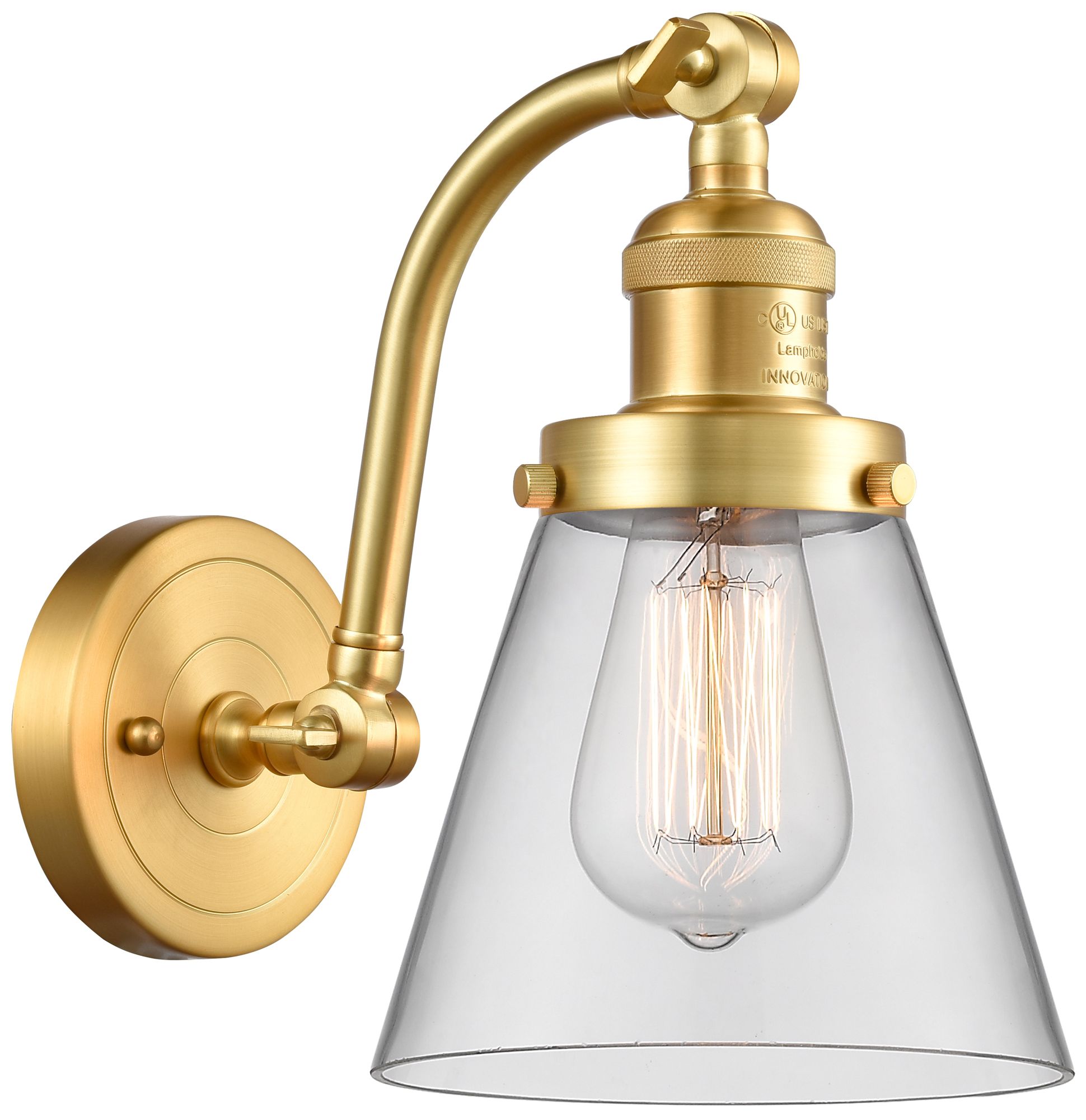 Cone 7" Satin Gold Sconce w/ Clear Shade