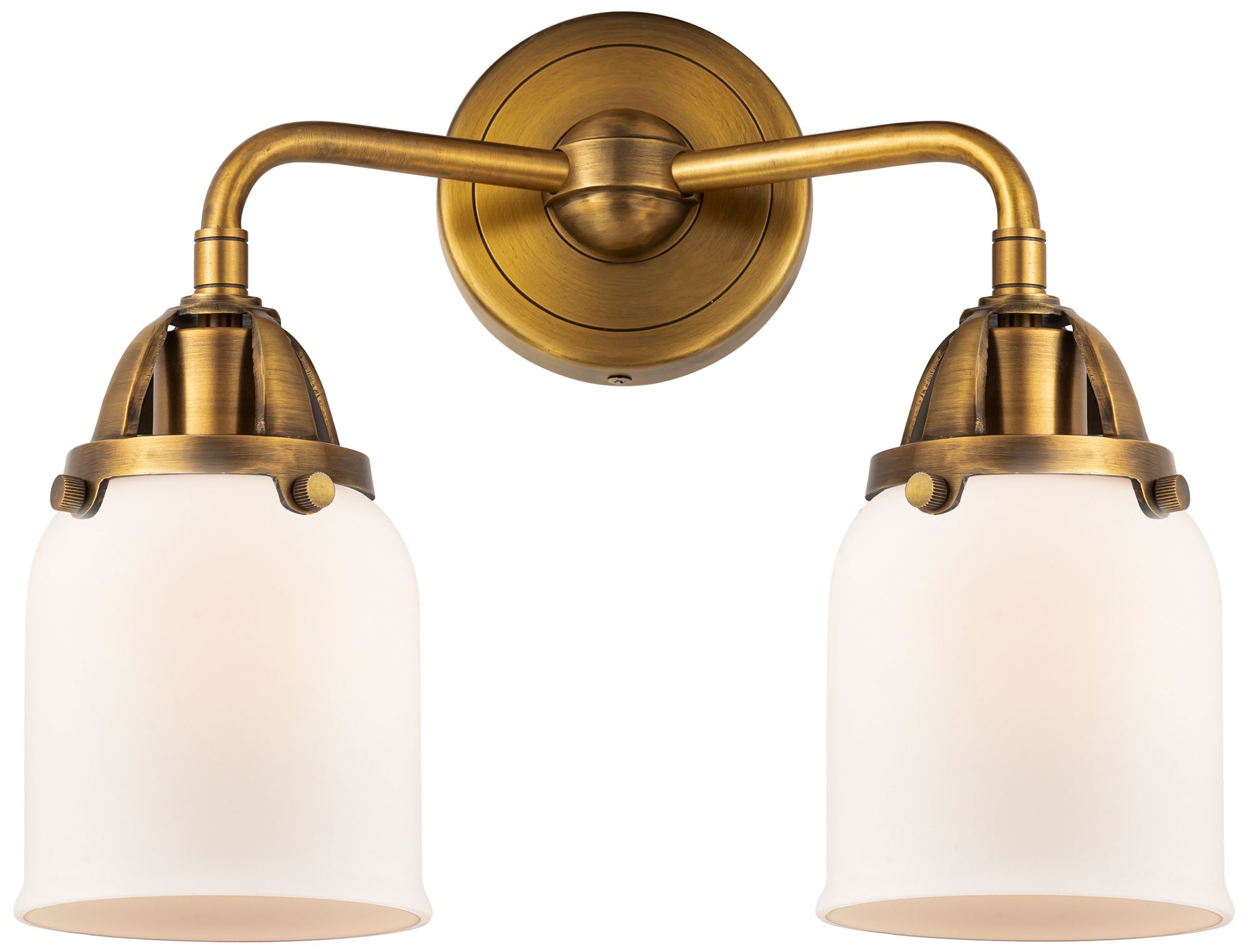 Nouveau 2 Bell 5" 2 Light 13" Bath Light - Brushed Brass - White