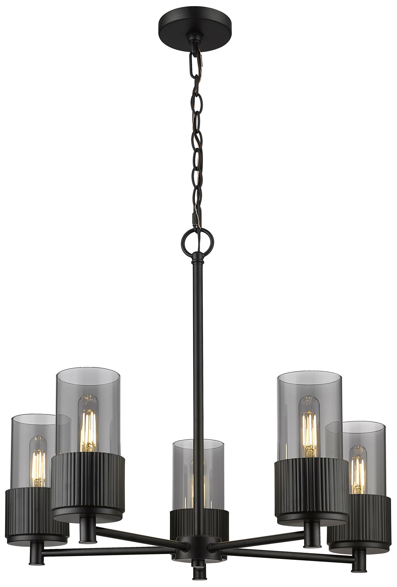 Bolivar 25"W 5 Light Black Chain Hung Chandelier w/ Smoke Shade