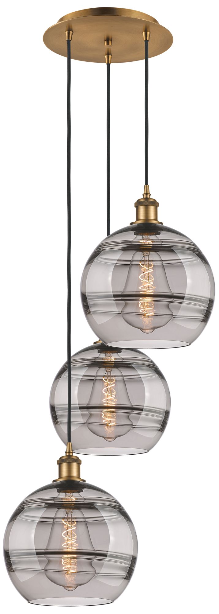 Ballston Rochester 16.5"W 3-Light Brushed Brass Cord Pendant w/ Smoke