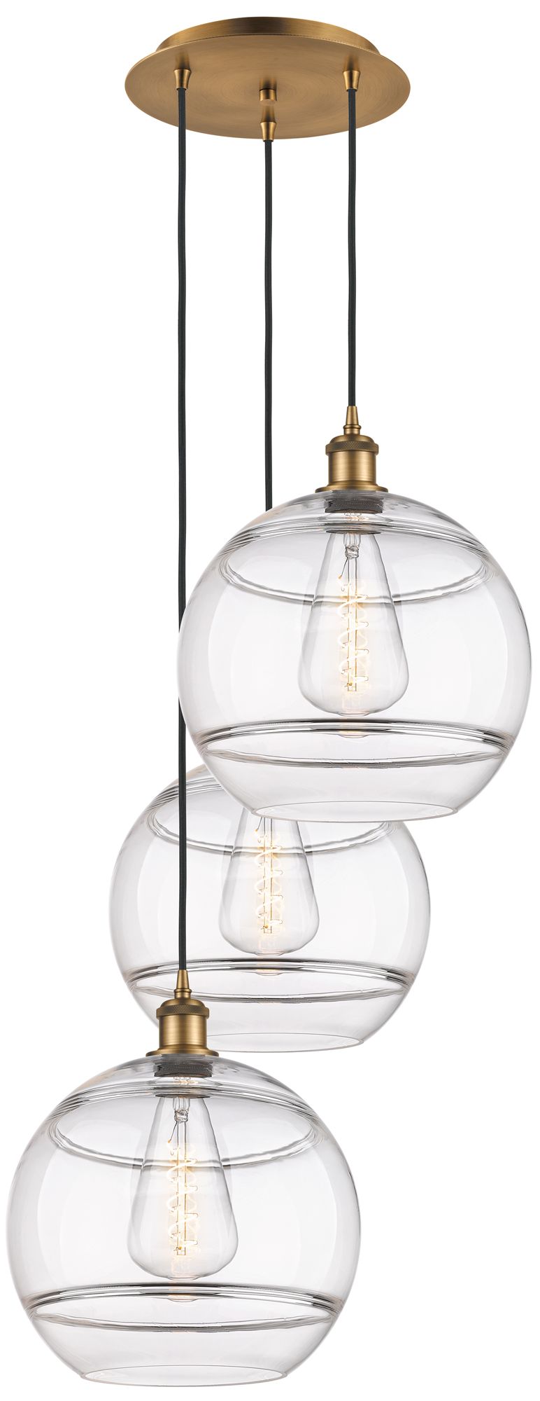Ballston Rochester 18.5"W 3-Light Brushed Brass Cord Pendant w/ Clear