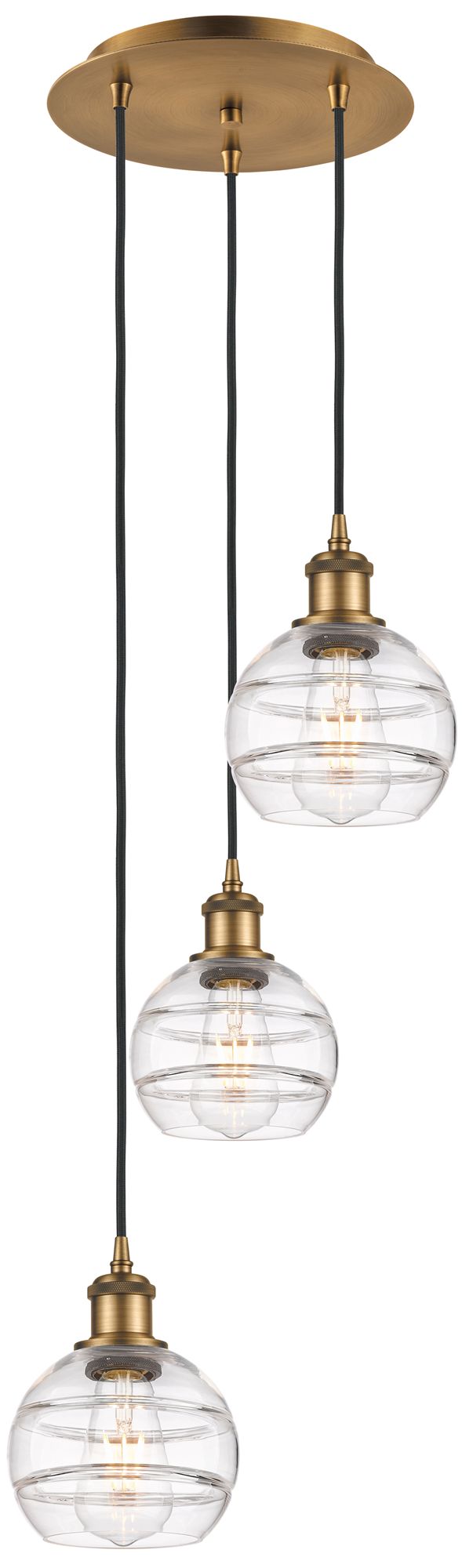 Ballston Rochester 13"W 3-Light Brushed Brass Cord Pendant w/ Clear Sh