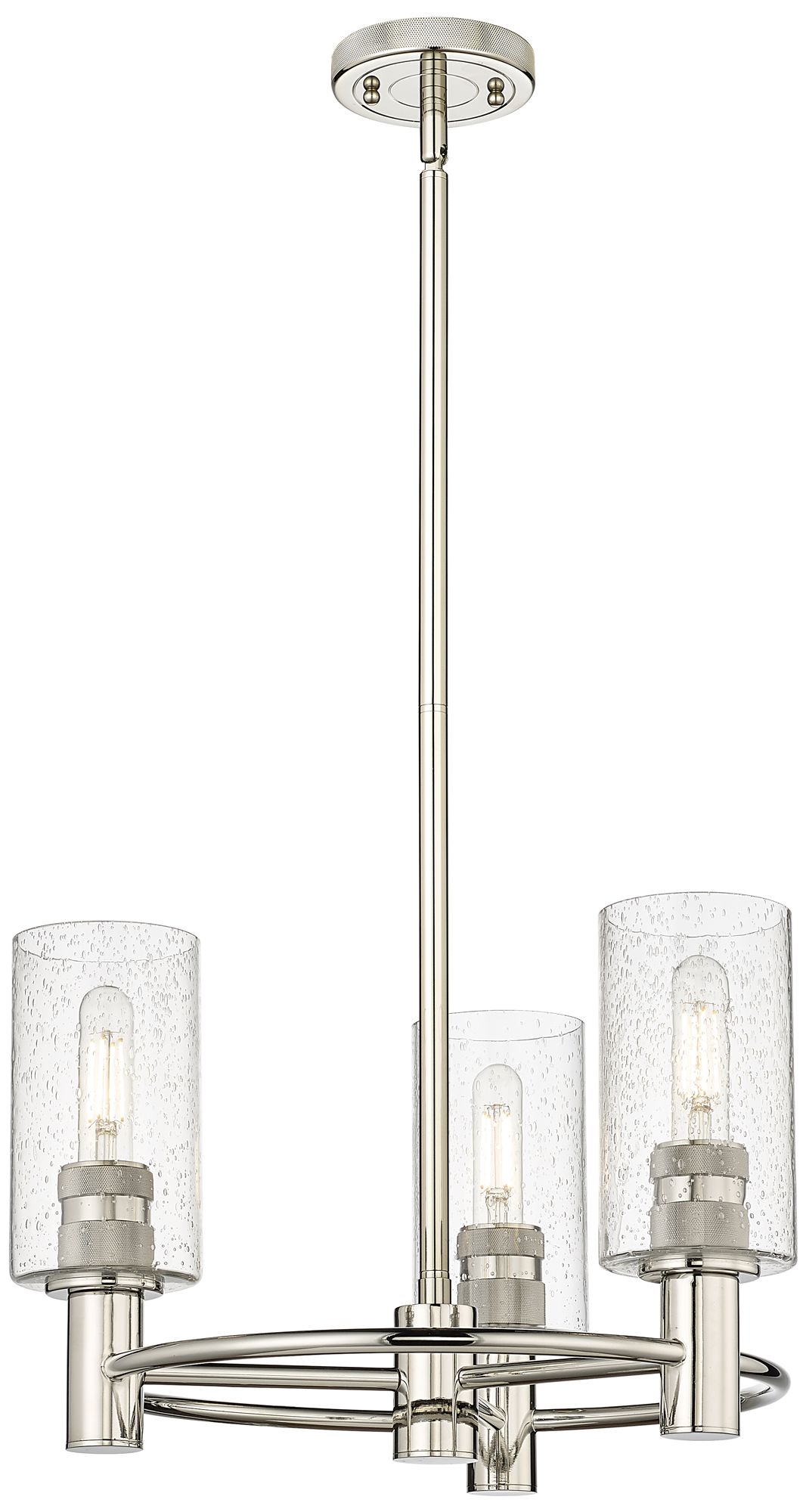 Crown Point 18"W 3 Light Stem Hung Polished Nickel Pendant With Seedy