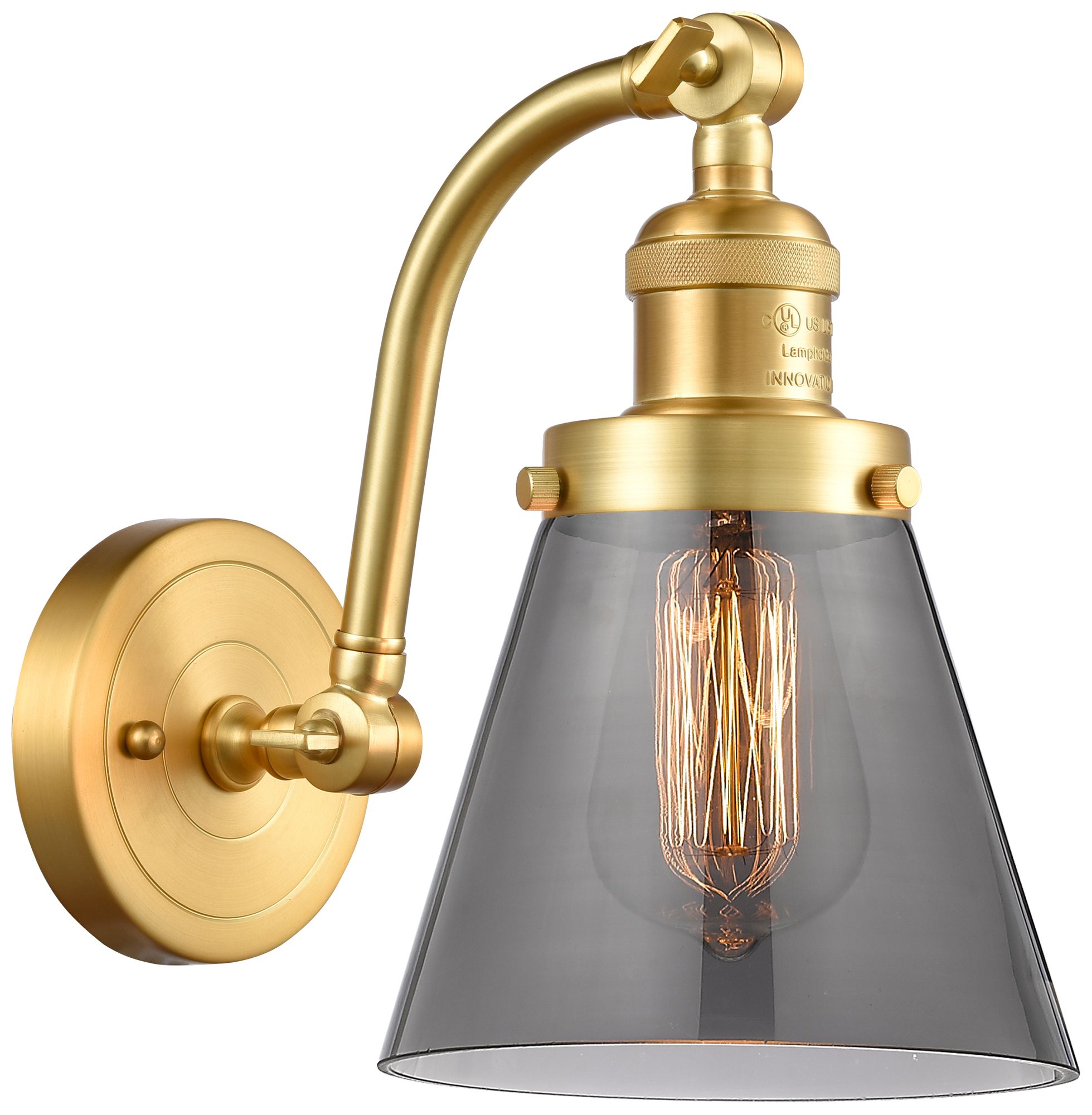 Cone 7" Satin Gold Sconce w/ Plated Smoke Shade