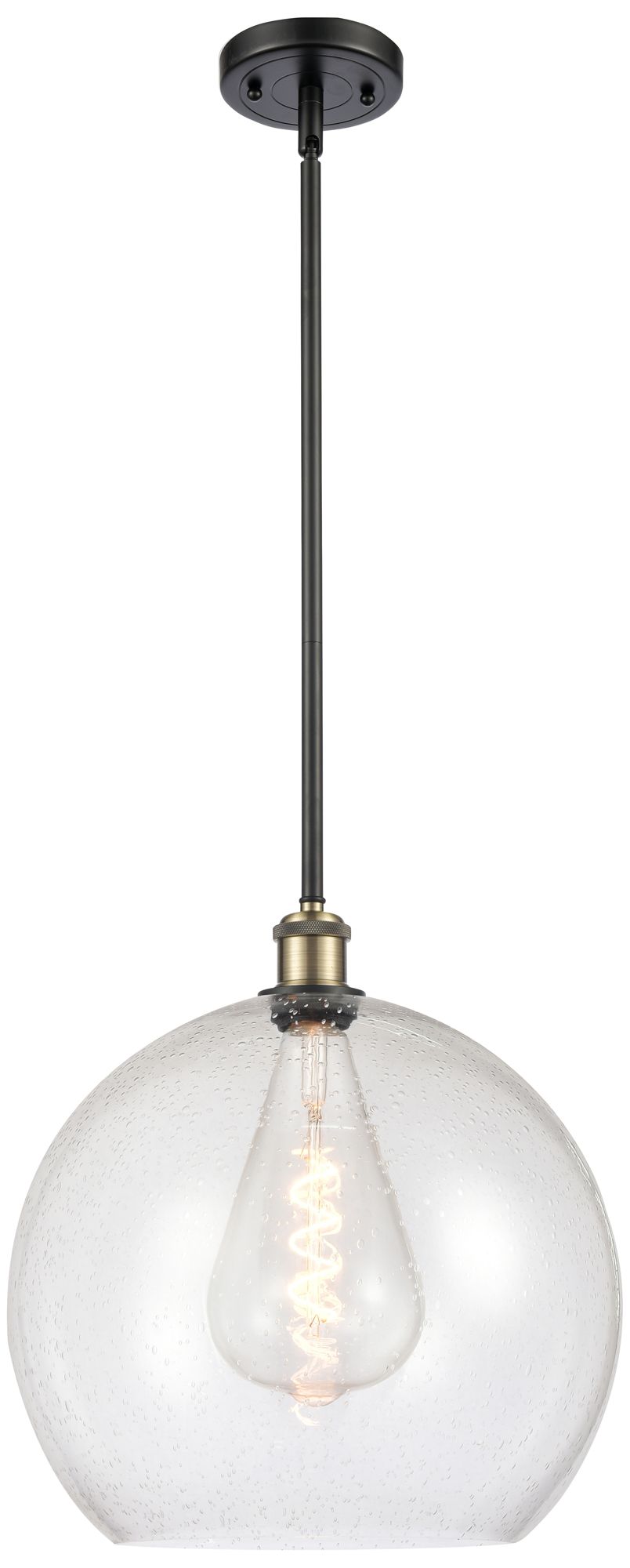 Athens 14" Black Antique Brass Pendant With Seedy Shade