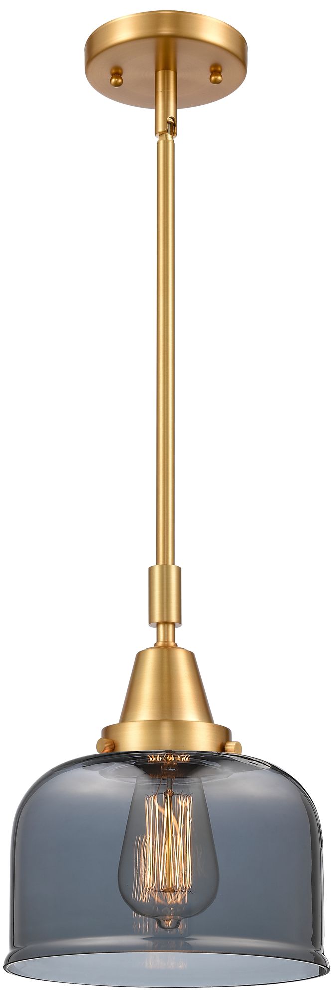 Caden Bell 8" Wide Satin Gold Stem Hung Mini Pendant w/ Plated Smoke S