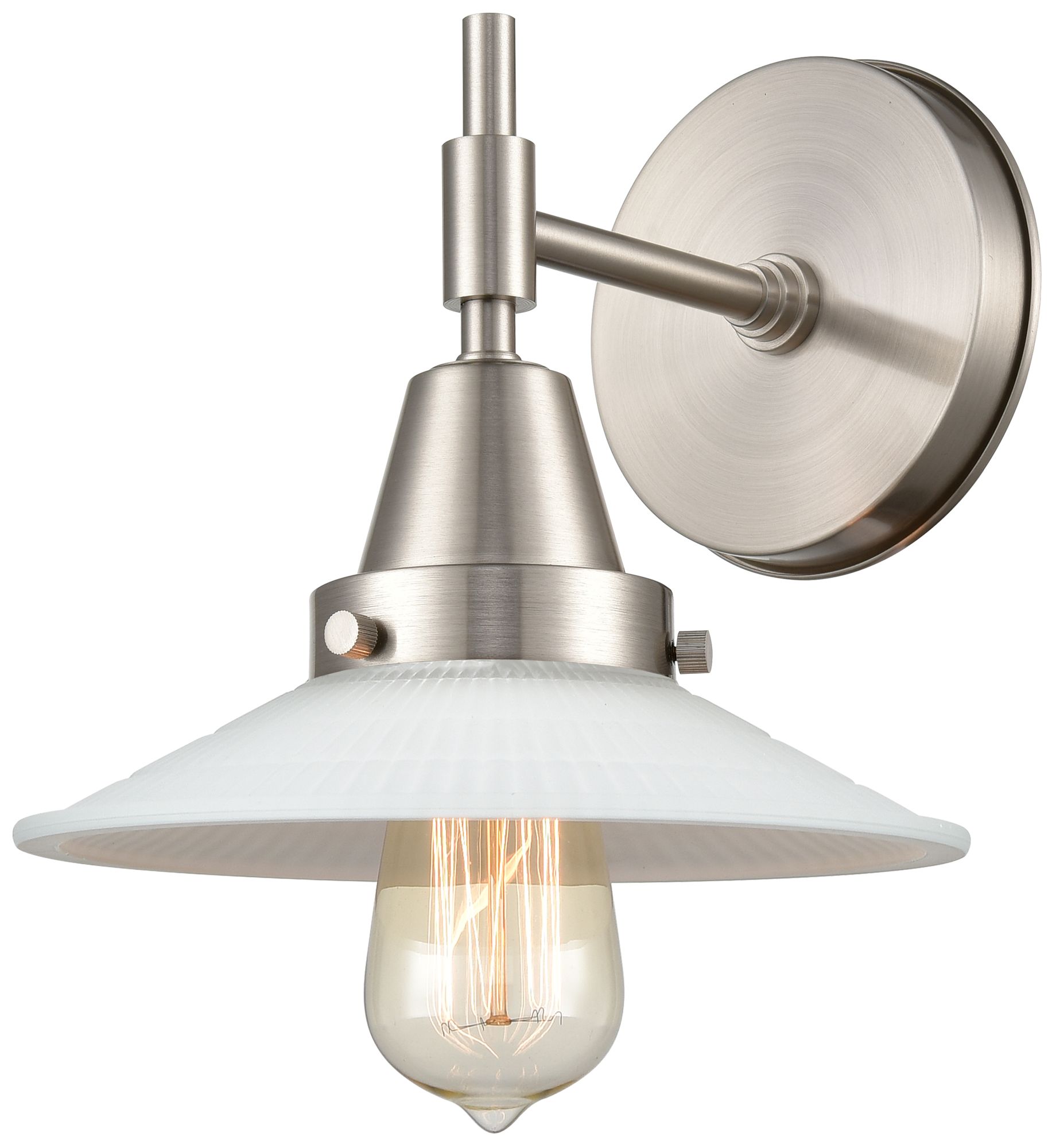 Caden Halophane 7.25"H Satin Nickel Sconce w/ Matte White Halophane Sh
