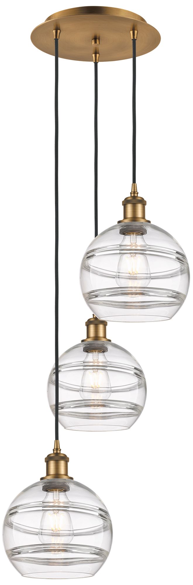 Ballston Rochester 14.5"W 3-Light Brushed Brass Cord Pendant w/ Clear