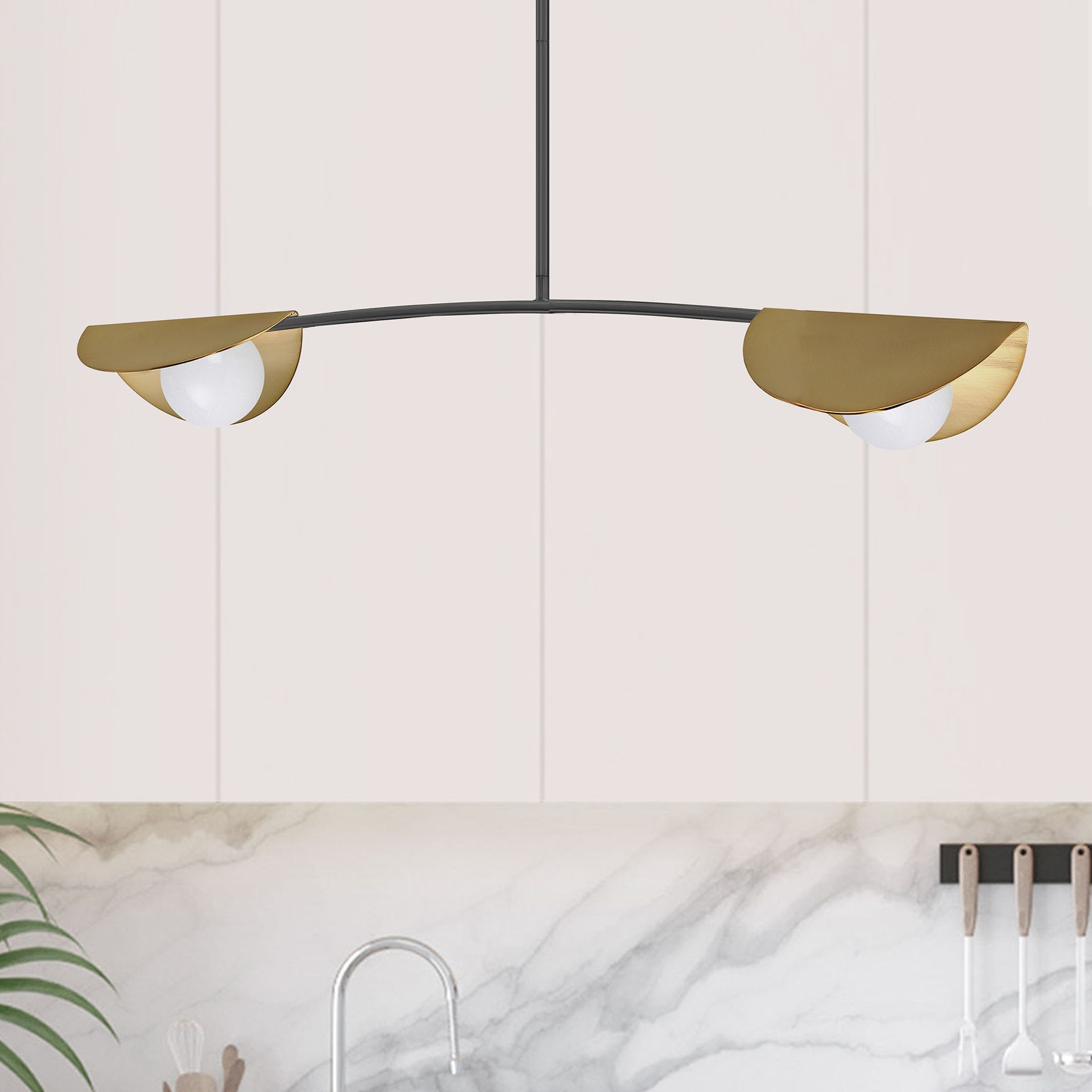 Emma 34" Wide 2 Light Horizontal Matte Black and Aged Brass Pendant